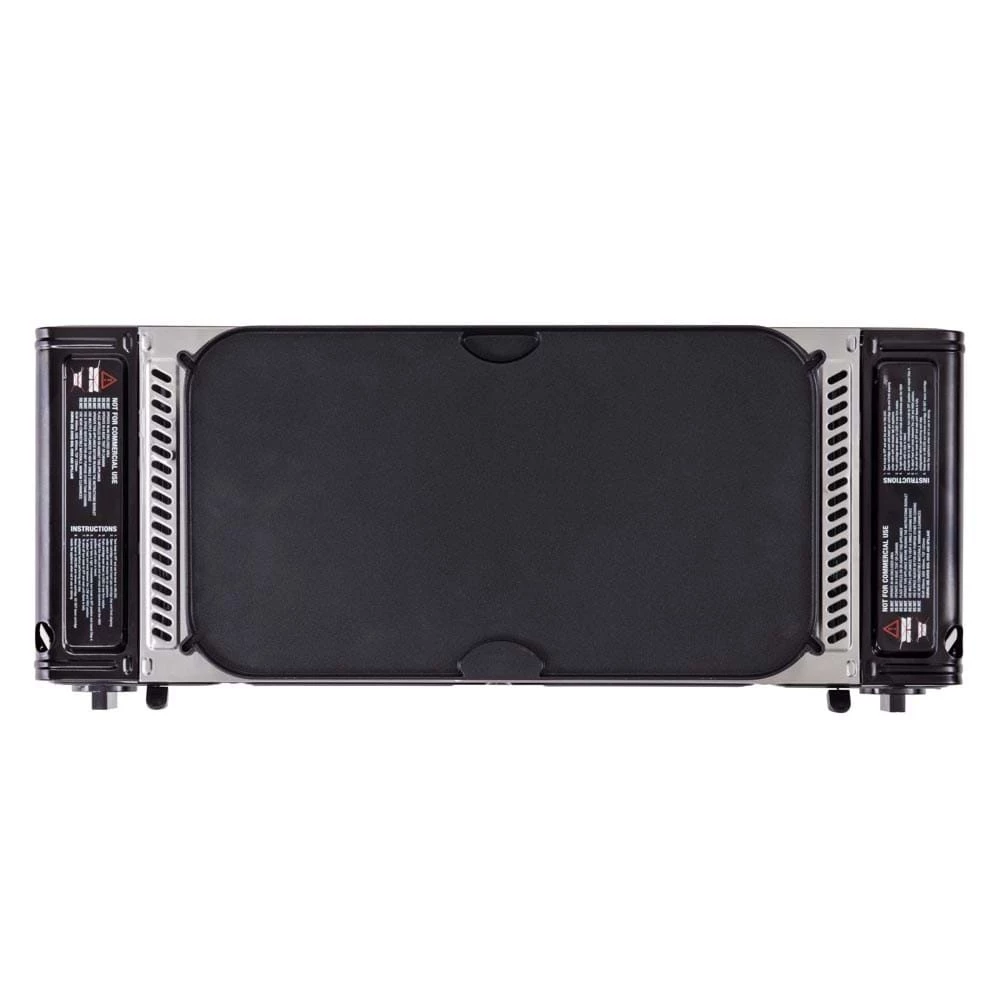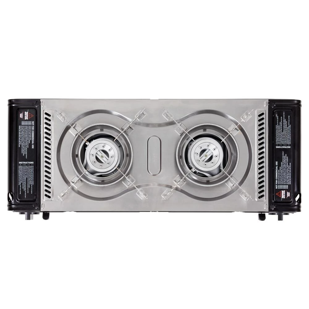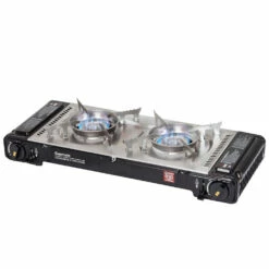The Gasmate Travelmate II Deluxe Twin Stove with Hotplate is a highly efficient outdoor butane gas cooking stove that comes complete with a reversible, non-stick, cast aluminium hotplate. The full stainless steel body ensures durability, long life and excellent performance.