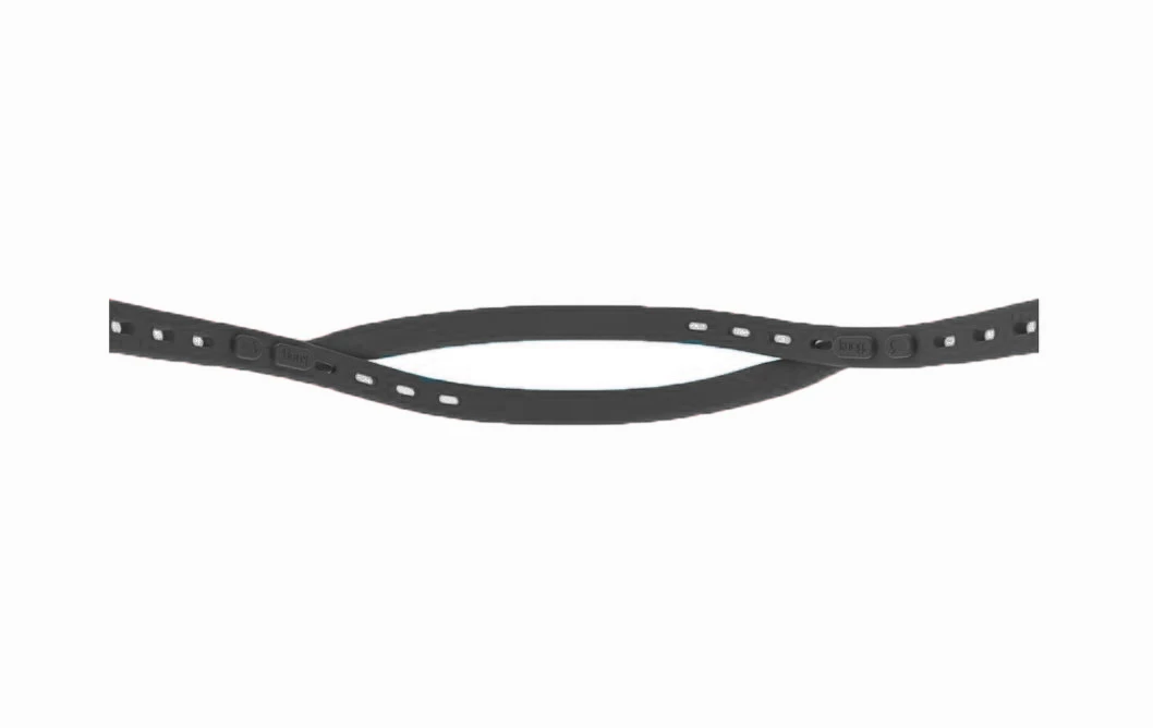 The silicone strap has a nice stretch to it and secures with snap buttons. Once you’ve found your size you can set and forget.