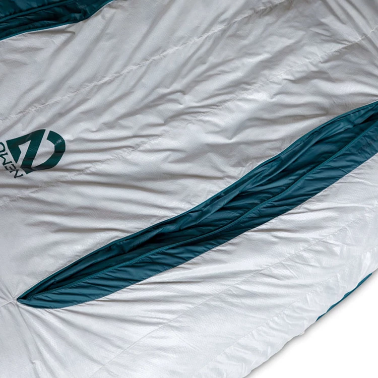 Nemo’s flagship Thermo Gills™ allow you to regulate temperature without letting in drafts, deeply extending the useable temperature range. The waterproof/breathable footbox and hood protect from tent wall condensation. Our exceptionally packable 800 FP down is hydrophobic, PFC-free, and 100% Responsible Down Standard (RDS) certified. Top shelf fabrics include a 20D nylon ripstop with DWR on the shell, an ultra-smooth 30D nylon taffeta lining, and a 40D nylon ripstop OSMO™ waterproof/breathable footbox.