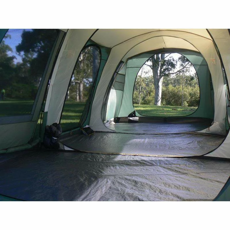 The Outdoor Connection Brampton three room family dome tent features great family space and comfort. Three large bedrooms, with 210 cm peak height over the full length of the tent, provide that great ‘fling your arms out’ feeling. Fresh air ventilation is a must on those hot Australian summer nights. Four large ‘Floor to Eave’ windows and four large Omega doors give maximum flow-through ventilation in every direction. Fresh air and coolness right down to ground level where you sleep! Â