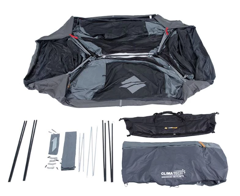 Oztrail’s Blockout Tent series allows families to sleep in longer, get the kids to bed earlier, and even control the heat inside of your tent on a hot summer’s day. The Oztrail Blockout 6-person tent is a single room footprint for couples or smaller families. The Oztrail Fast frame system is designed for quick and easy set up in just minutes! With the Blockout coating on the fly, the light can be blocked by up to 95% and reduces the heat inside the tent by 10 degrees. Â