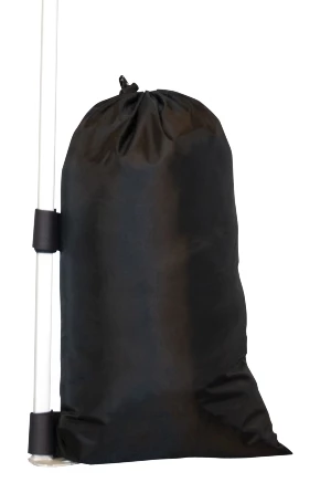 - Simply fill the bag with sand and attach to the leg of your gazebo or pavilion