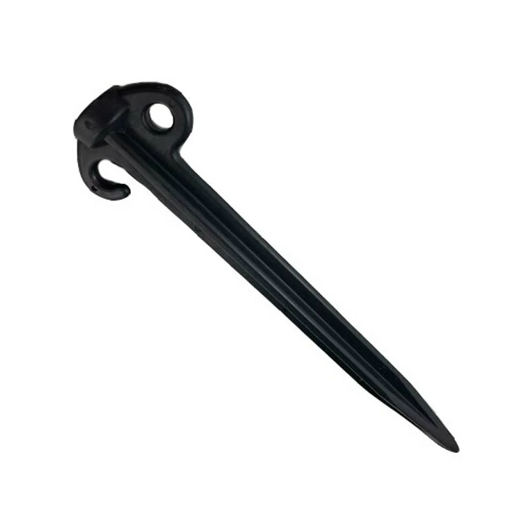 This plastic peg tent peg has a heavy-duty design making it ideal to use in sand and soil and is also highly visible. The large hard is suited for high impact and is complimented with a supa strong hook and eye for rope and trace springs.