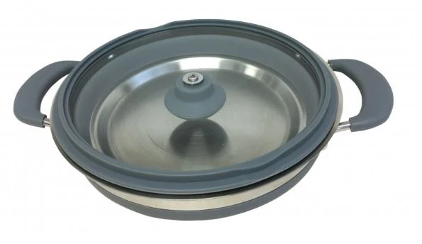 - Lid is manufactured from glass so you can watch your food without lifting and has anti slip edge and silicone, insulated knob. Rim can be set up to release heat to avoid steam injuries.