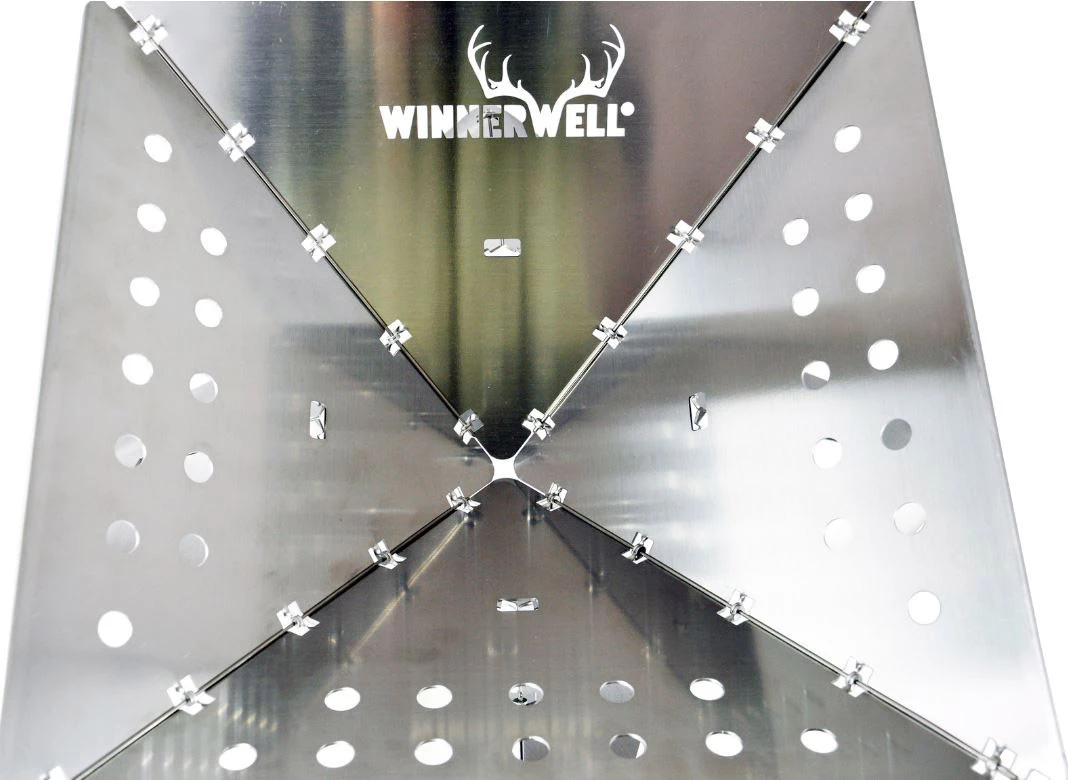The Winnerwell Flat Firepit is a truly unique, sturdy, compact and portable Firepit that can be used with a variety of cooking and grilling accessories. Built from Stainless Steel the Flat Pack Firepit is paired with the bottom base, that is designed to fold up completely flat for easy storage and transportation. The Winnerwell Flat Firepit is made up of two parts, this includes the Firepit body, and they Base stand. Both parts fold in half for compact storage.