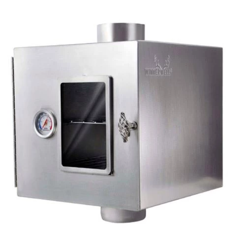 Made from 304 Stainless steel, the oven chamber is completely sealed which allows smoke to bypass the oven while also heating it. A glass viewing window and integrated thermometer help you dial in the oven for baking perfection.