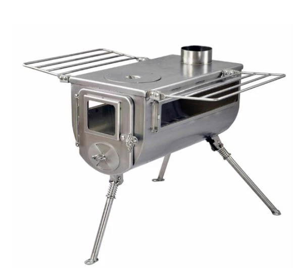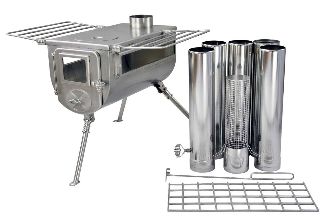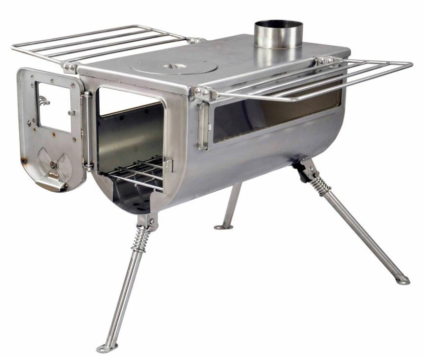 The Winnerwell Woodlander Stove is compact and portable with three viewing windows and built to be a small wood burning stove that will efficiently heat small spaces that provides a functional cooktop area for preparing camp meals. Ideal for general outdoor use. Made entirely in 304 Stainless steel that prevents rust and corrosion, the Woodlander is well suited to use in harsh outdoors environments.